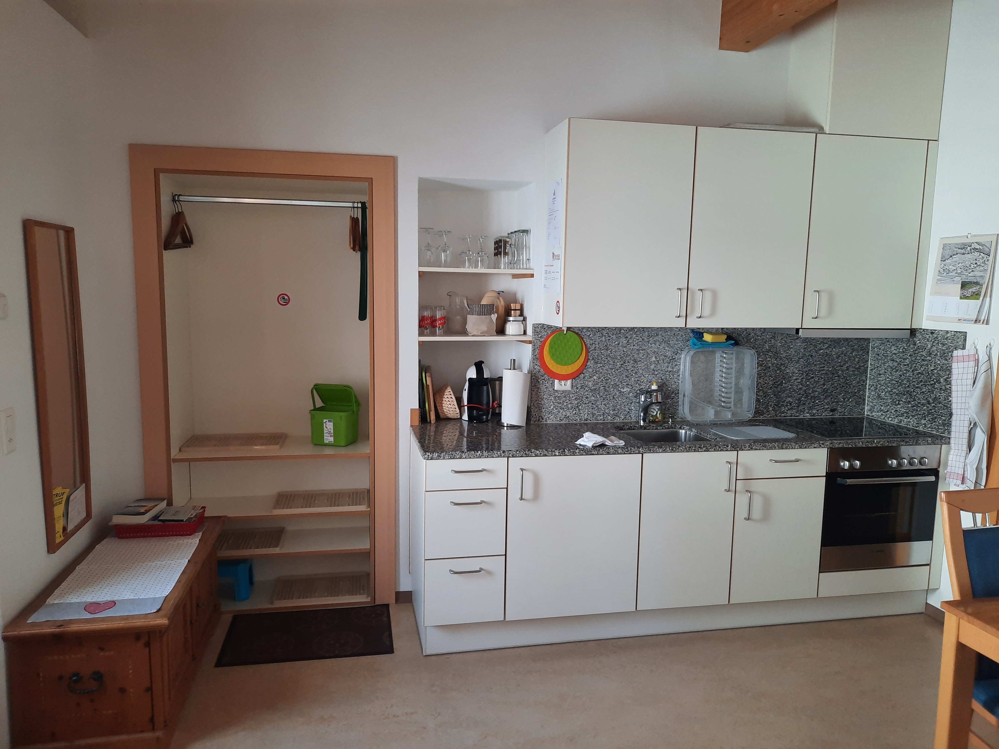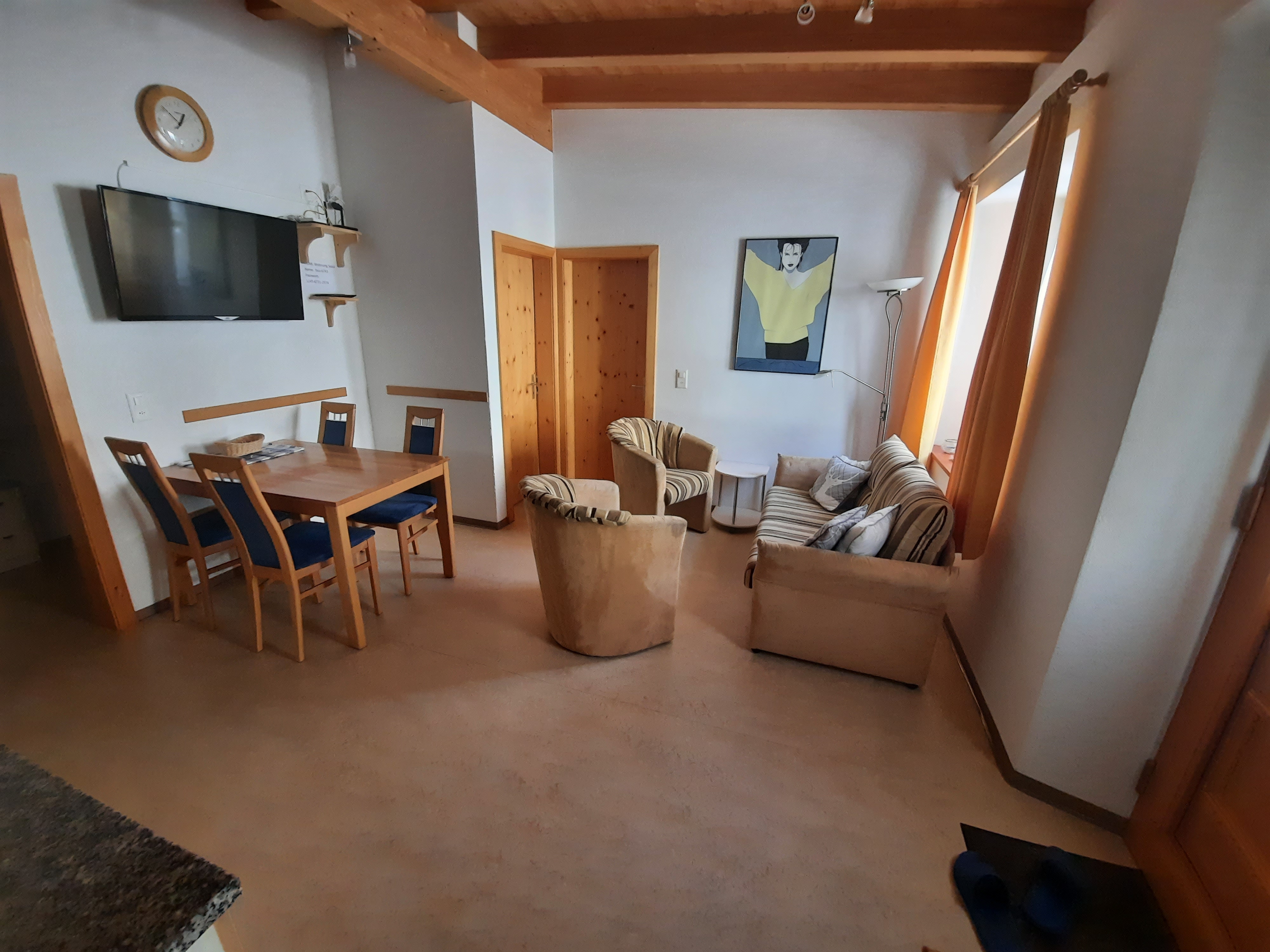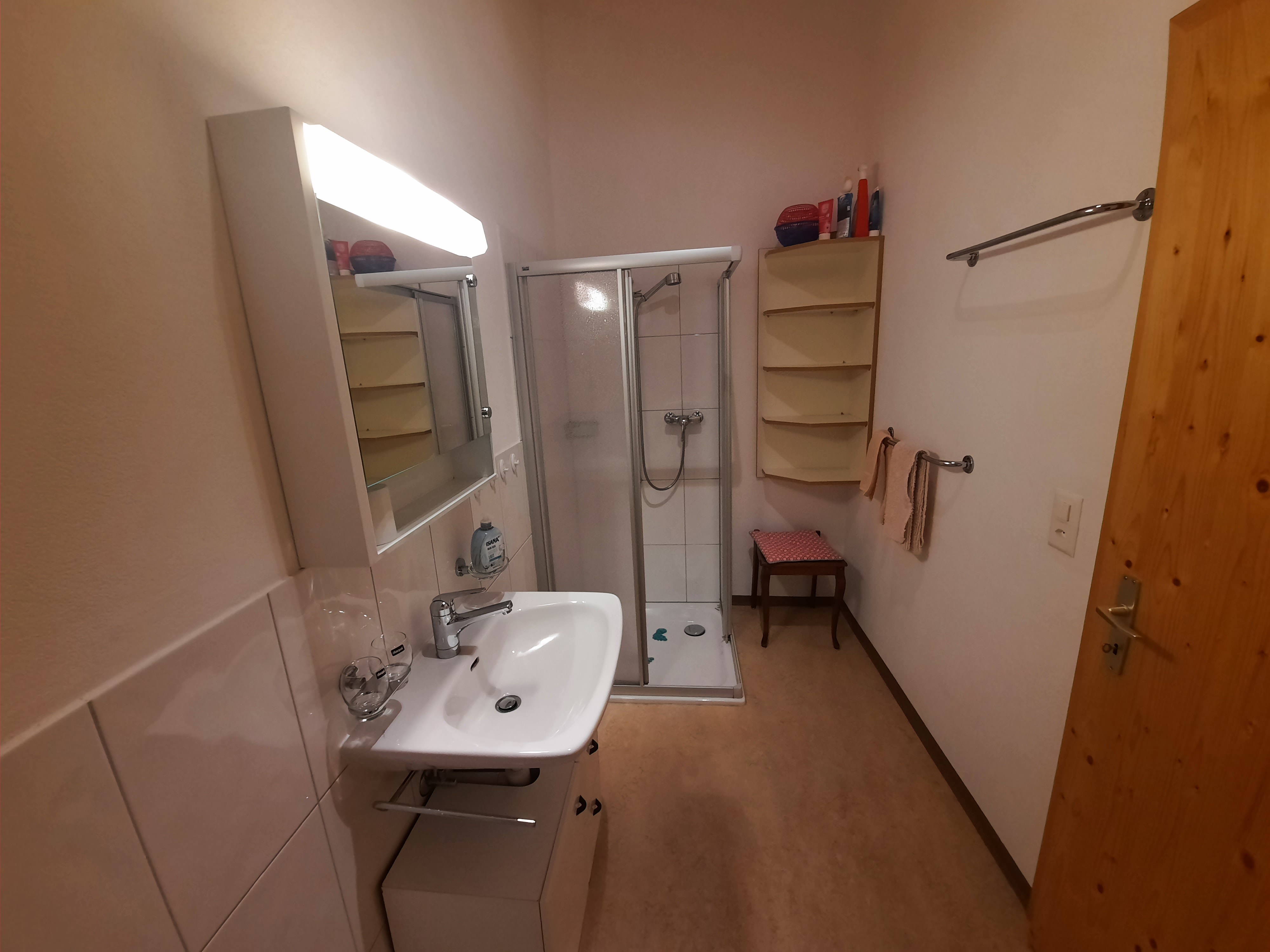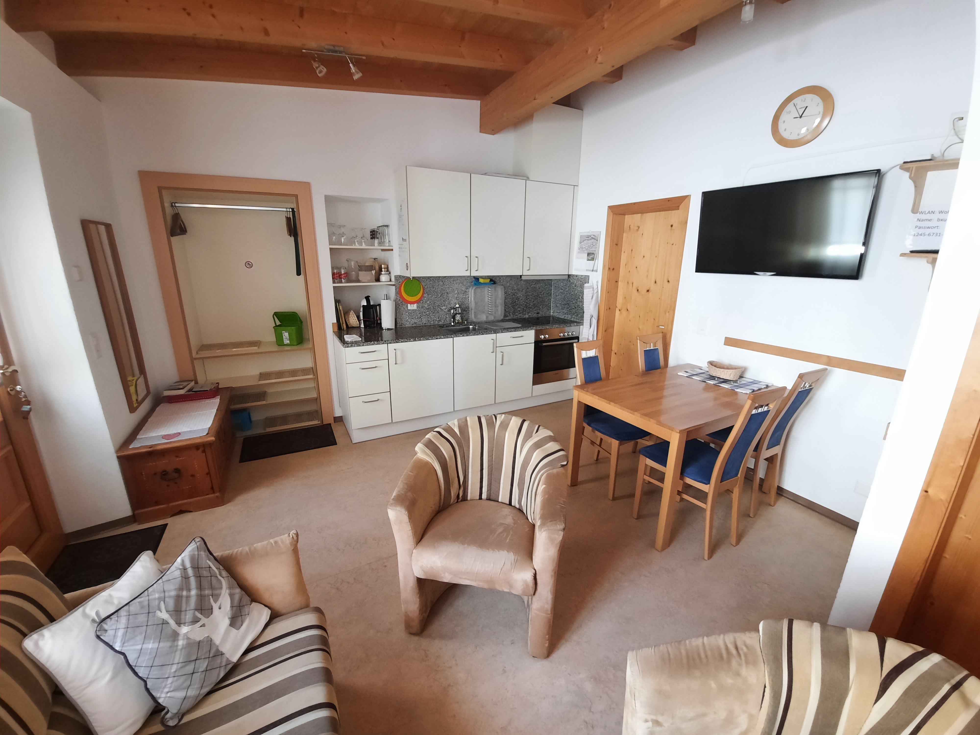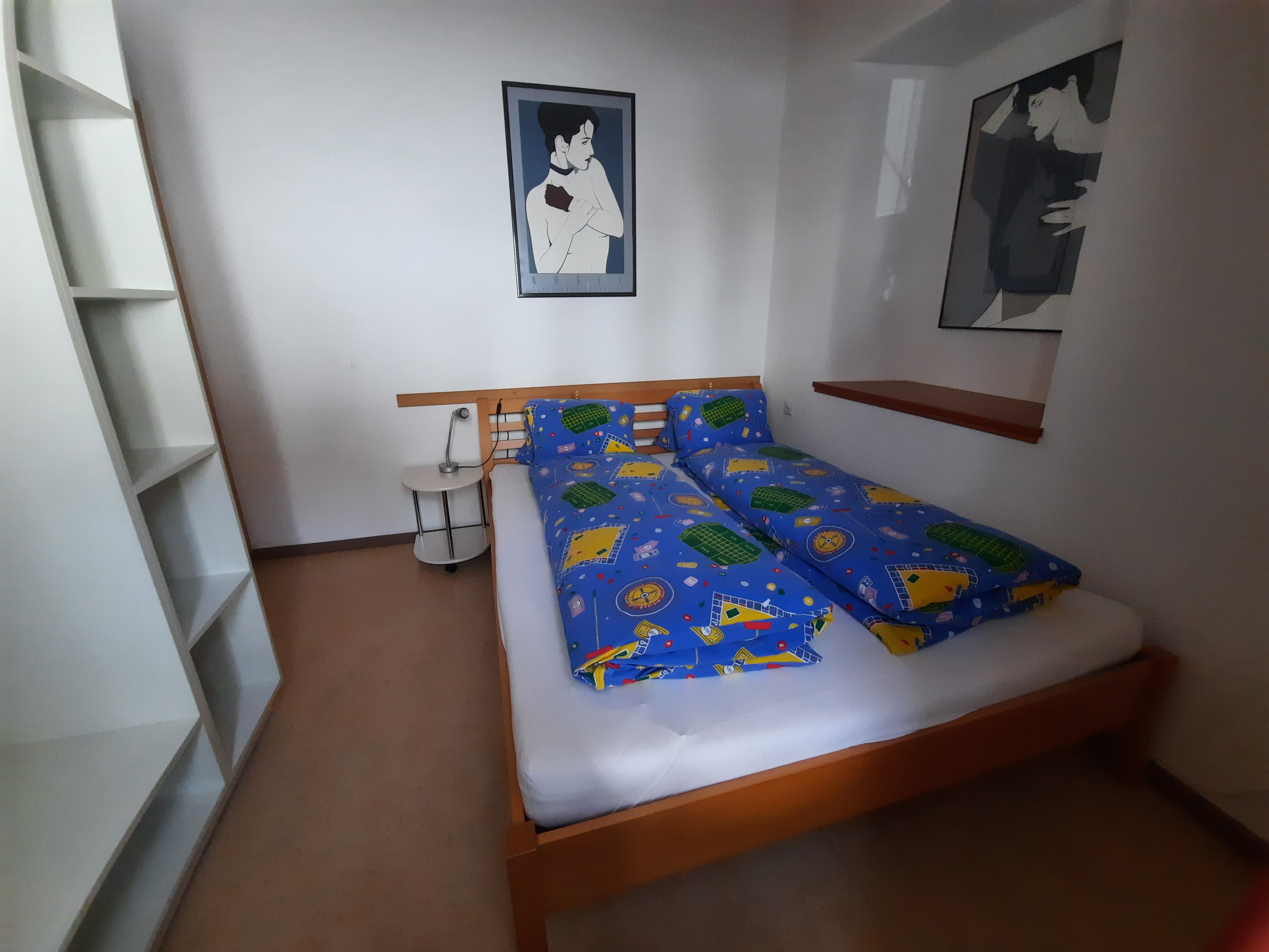 L'appartement confort de 3 pièces au rez-de-chaussée dispose: 1 salon/salle à manger, cuisine ouverte, 2 chambres à coucher ayant chacune 1 lit double, 1 lit d'enfant, 1 salle de bain avec douche, 1 place de repos avec mobilier