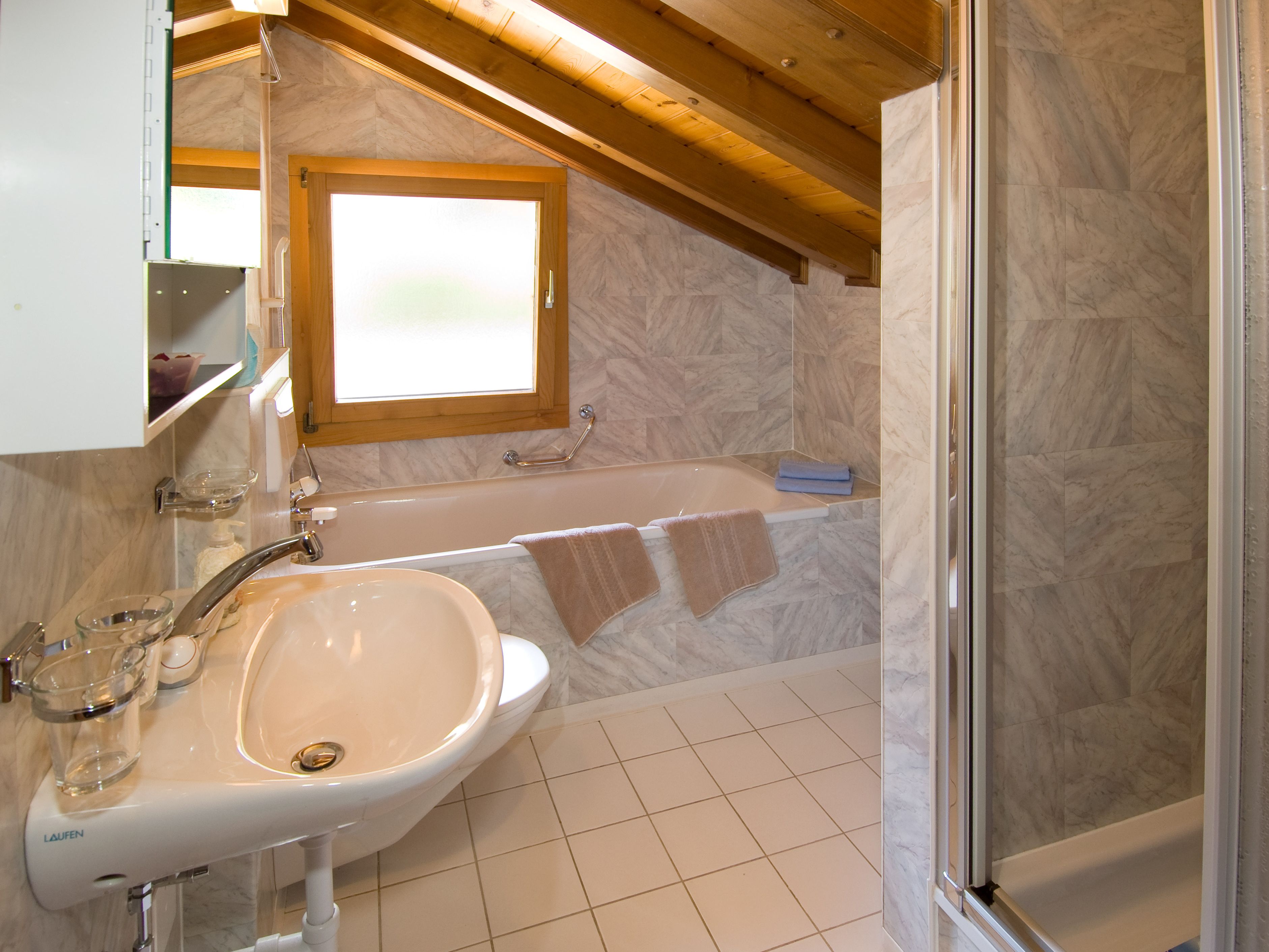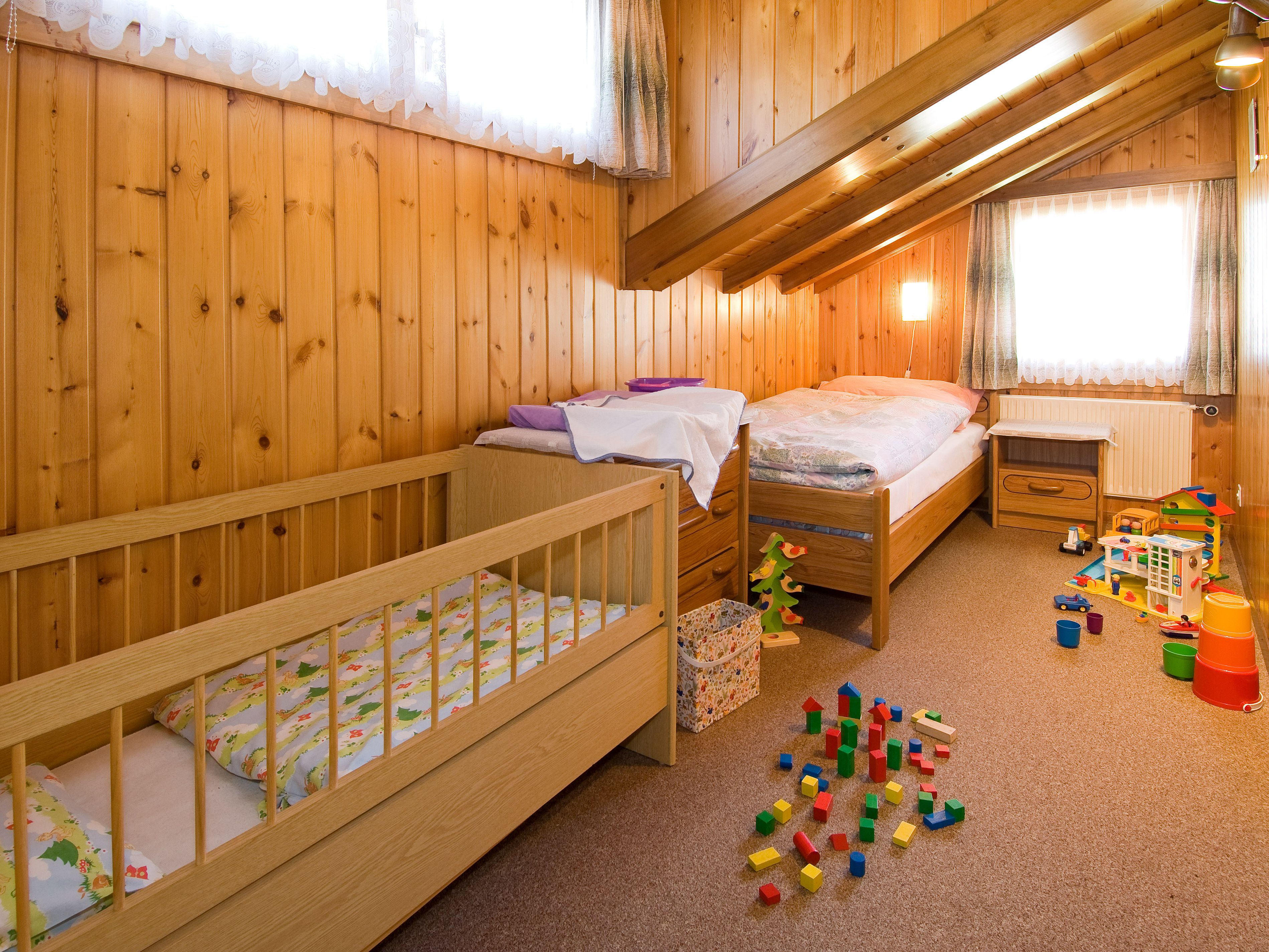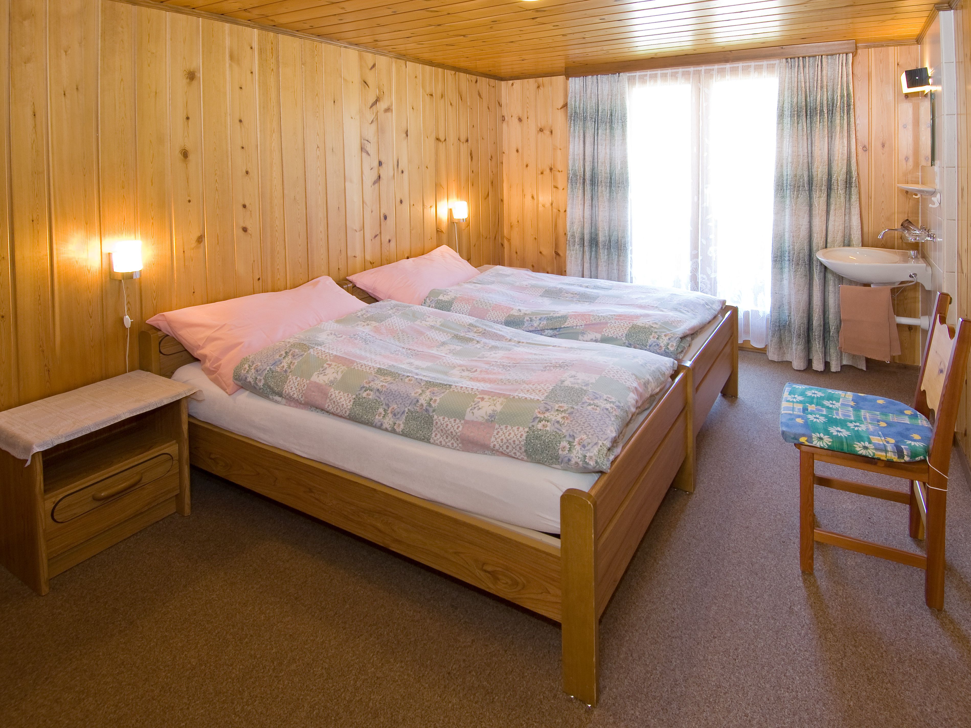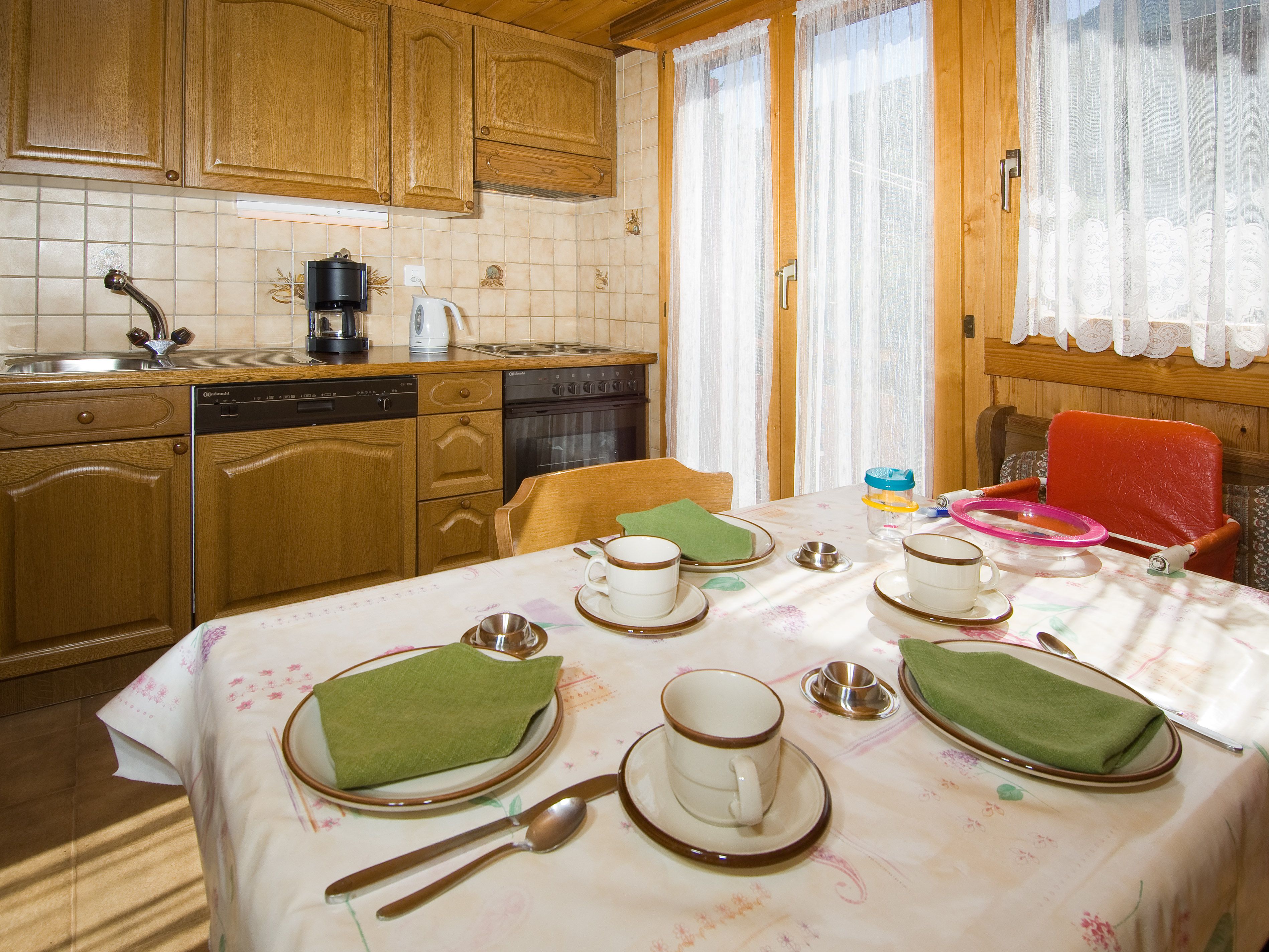 L'appartement confort de 4,5 pièces au 2e étage dispose: 1 salon, cuisine habitable avec coin pour manger, 1 chambre à coucher avec lit simple, 1 chambre à coucher avec 2 lits simples et lavabo, 1 chambre à coucher avec lit superposé, 1 lit d'enfant, 1 salle de bain avec douche et baignoire, 1 toilette séparée, 2 balcons